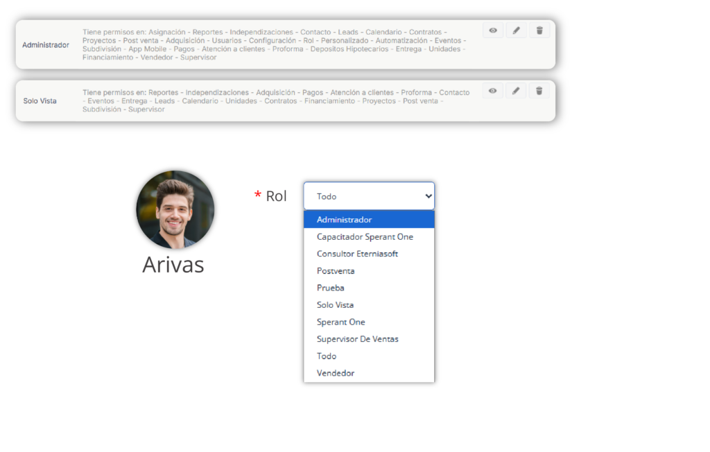 Crea y asigna roles. Determina los permisos y actividades que cada usuario tendrá durante su sesión en Sperant.